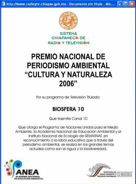 El galardón es otorgado por el Programa de las Naciones Unidas para el Medio Ambeinte (PNUMA), La Universidad de Guadalajara, la Academia Nacional de Educación Ambiental (ANEA) y el Instituto nacional de Ecología (INE)GUADALAJARA, Jal. a 3 de Diciembre de 2006.- Bajo las premisas de que faltan políticas públicas reales y una mayor participación ciudadana ante el continúo deterioro de la naturaleza, funcionarios, estudiosos y periodistas urgieron mayor responsabilidad social, conocimiento sobre el estado de los recursos naturales y las posibles soluciones.